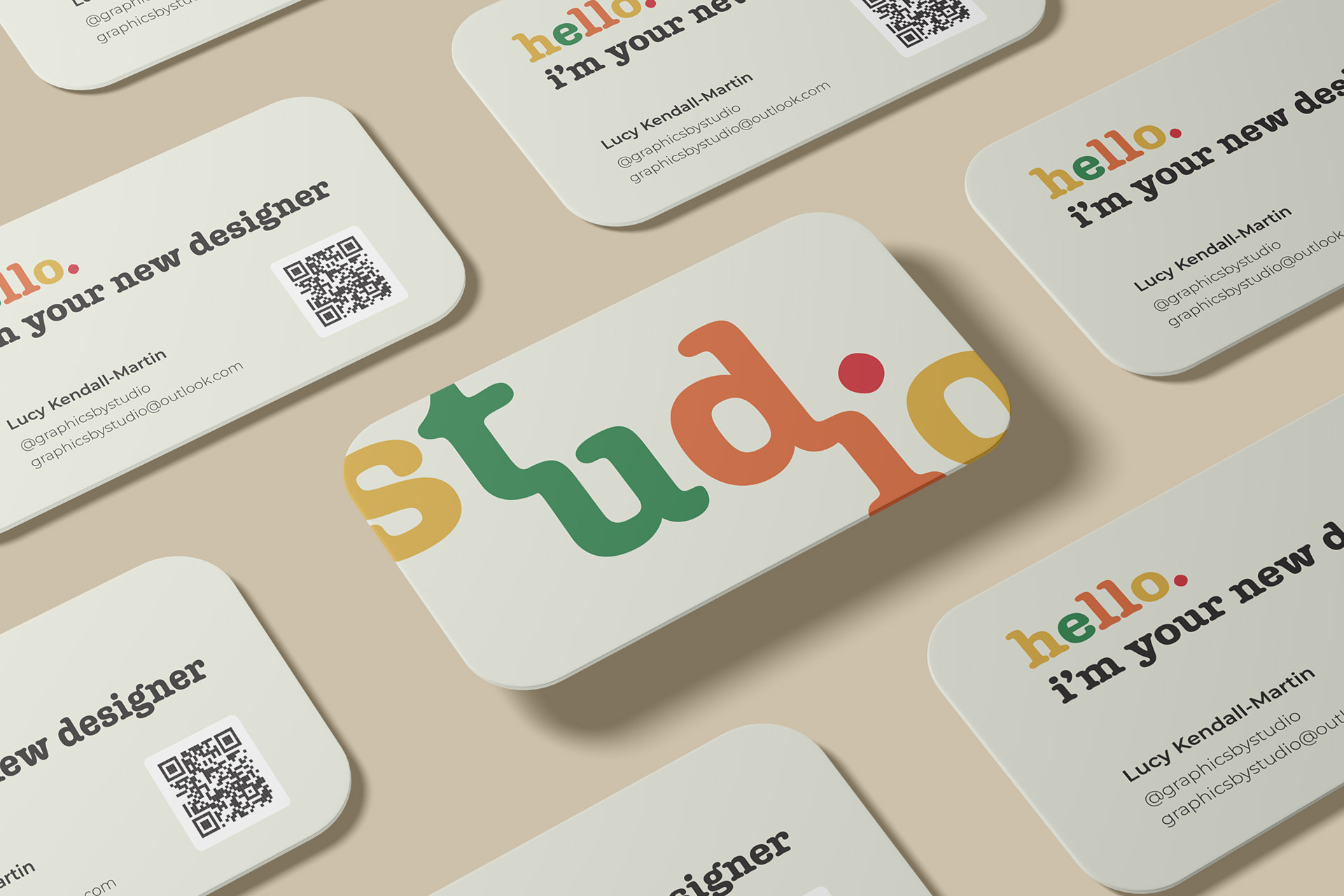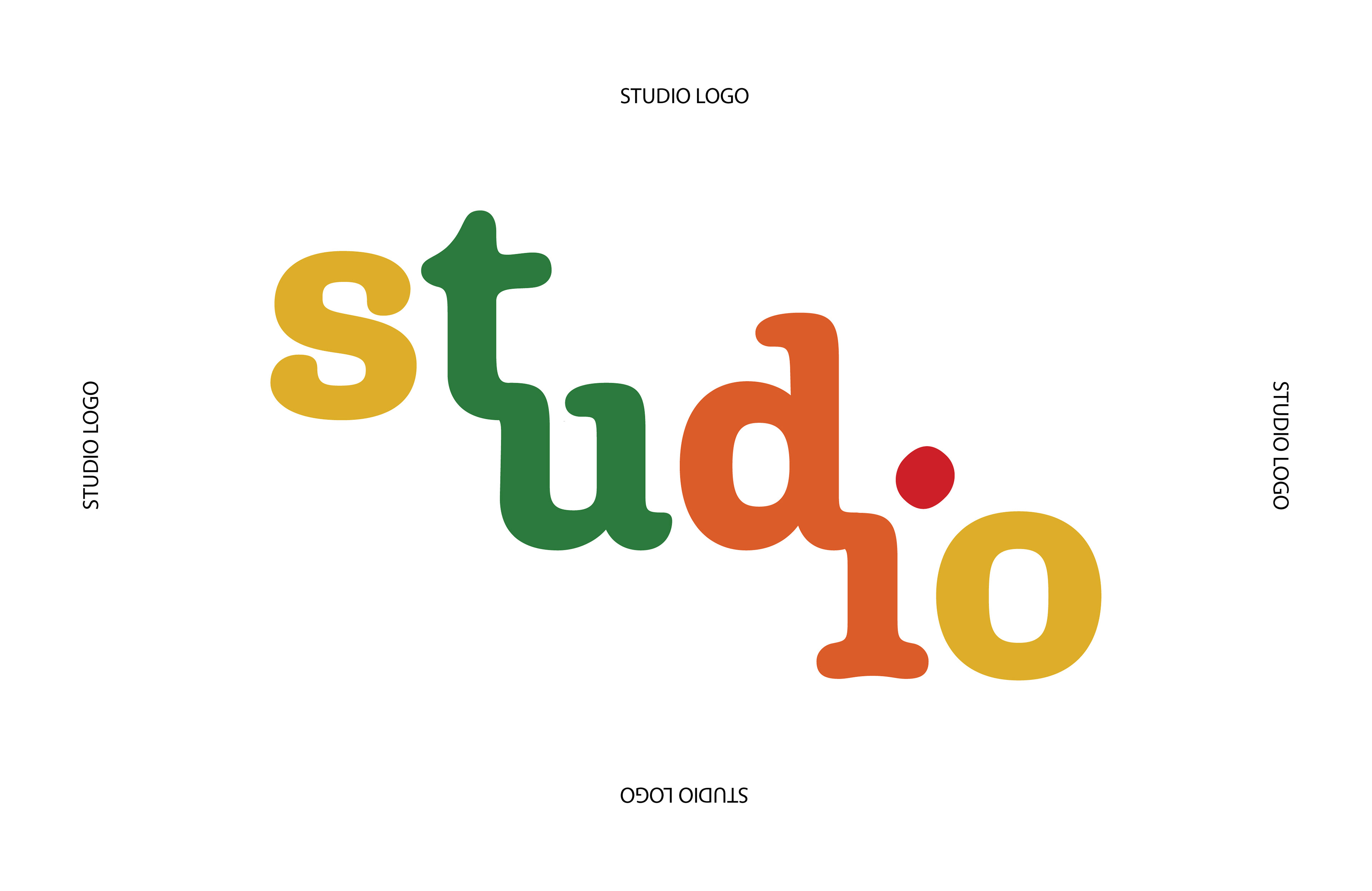 A fun and colourful solution to Studio's branding: logo design, brand page, icon logo, social post, LinkTree and business cards.